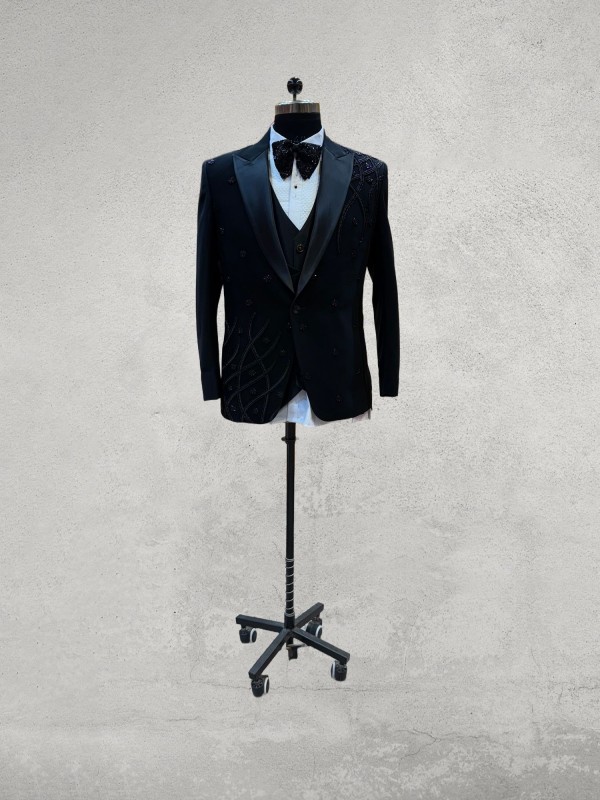 Black embroidered designer tuxedo 5 piece