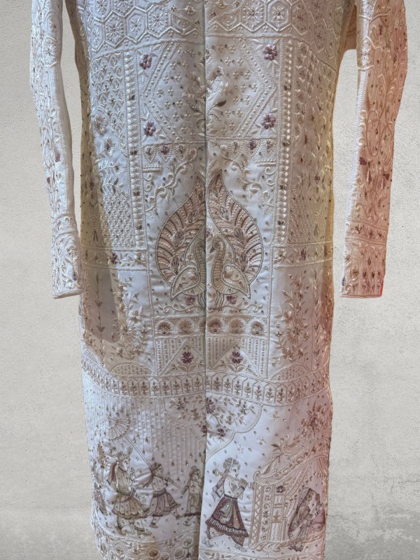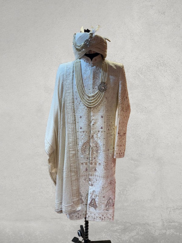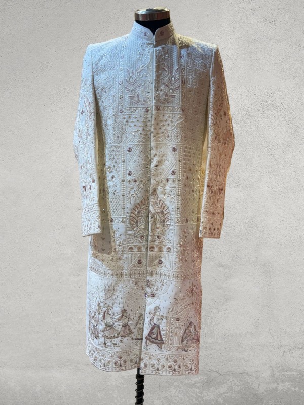 Designer Rajwada Sherwani: Experience royal elegance with our hand-embroidered Rajwada sherwani. Perfect for grooms, this traditional pattern features intricate details that capture the essence of Indian heritage and luxury.