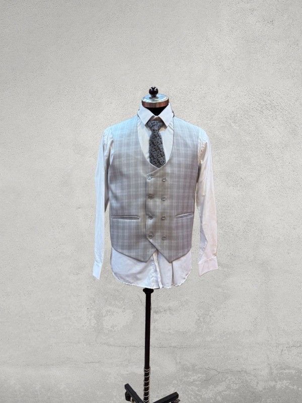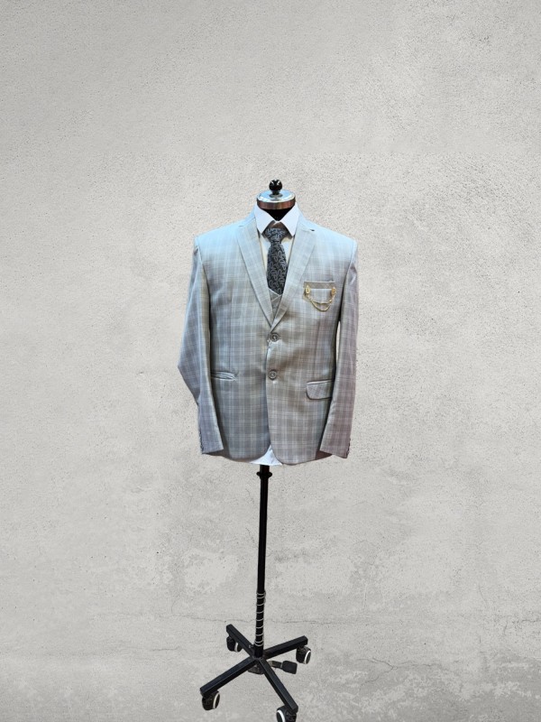 Make a statement with this expertly tailored 5-piece grey check suit. The sophisticated Italian fabric and classic check pattern create a sharp, modern silhouette that's perfect for both weddings and professional settings. This all-in-one ensemble provides everything you need to look your best.