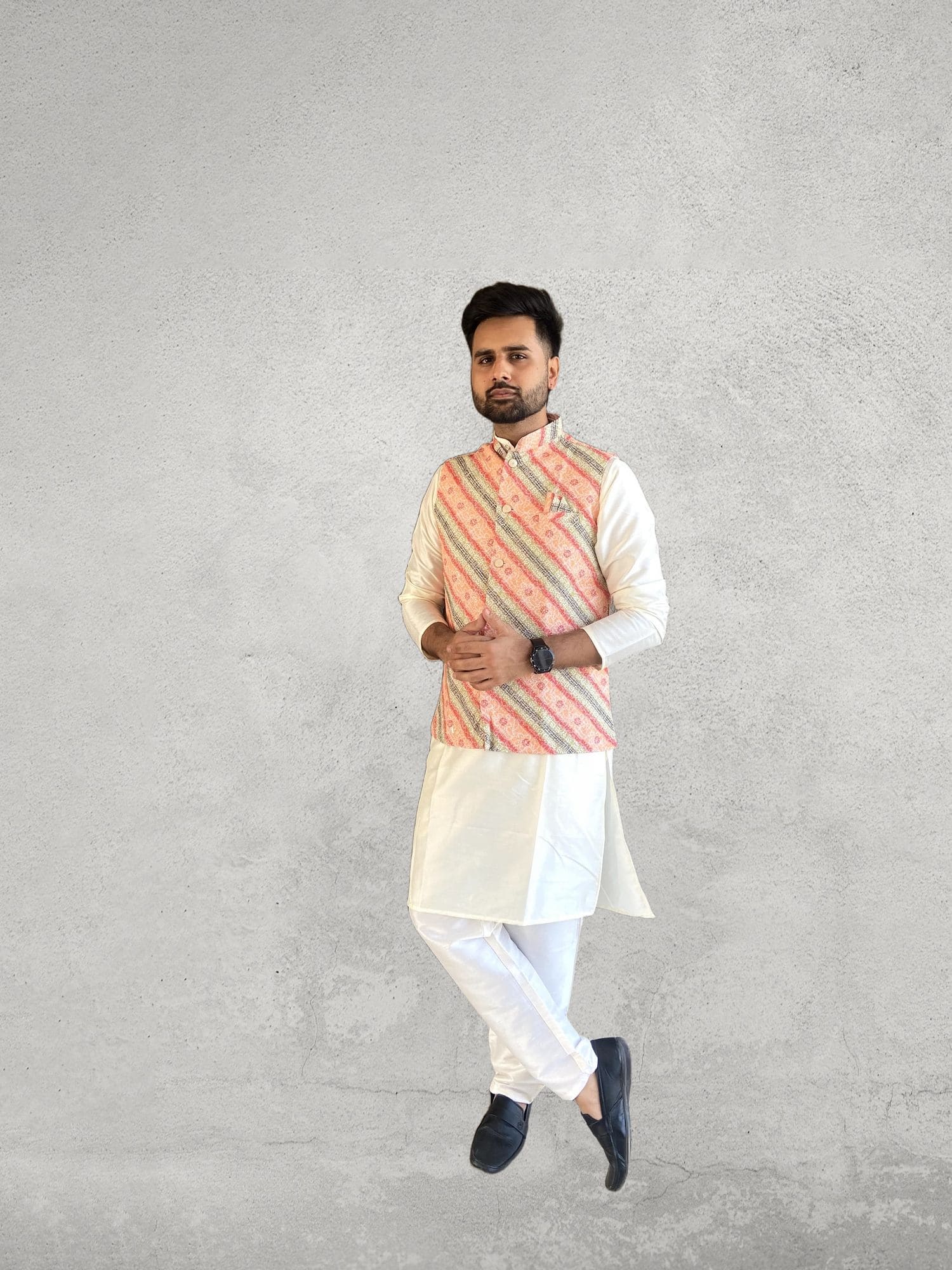 Premium silk quality kurta with embroidery on nehru jacket and comes with pants