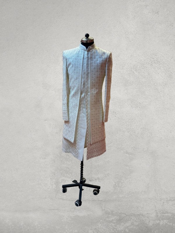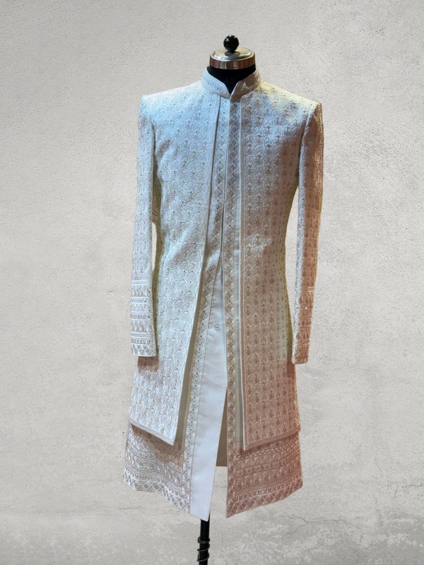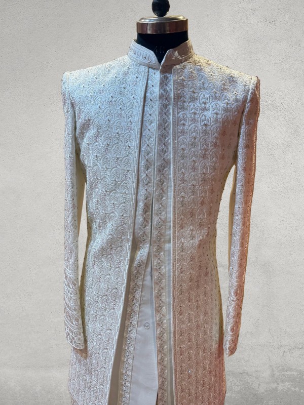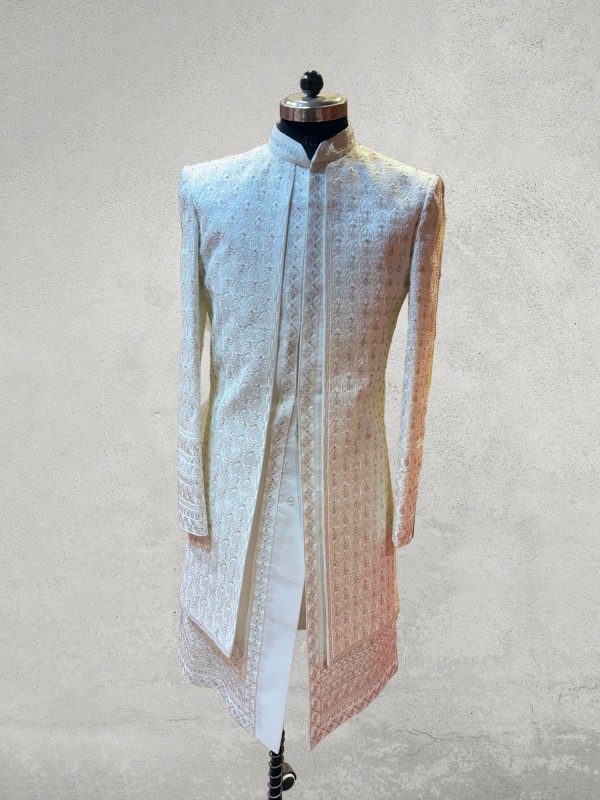 Multicolour zarkan embroidered open pattern designer sherwani