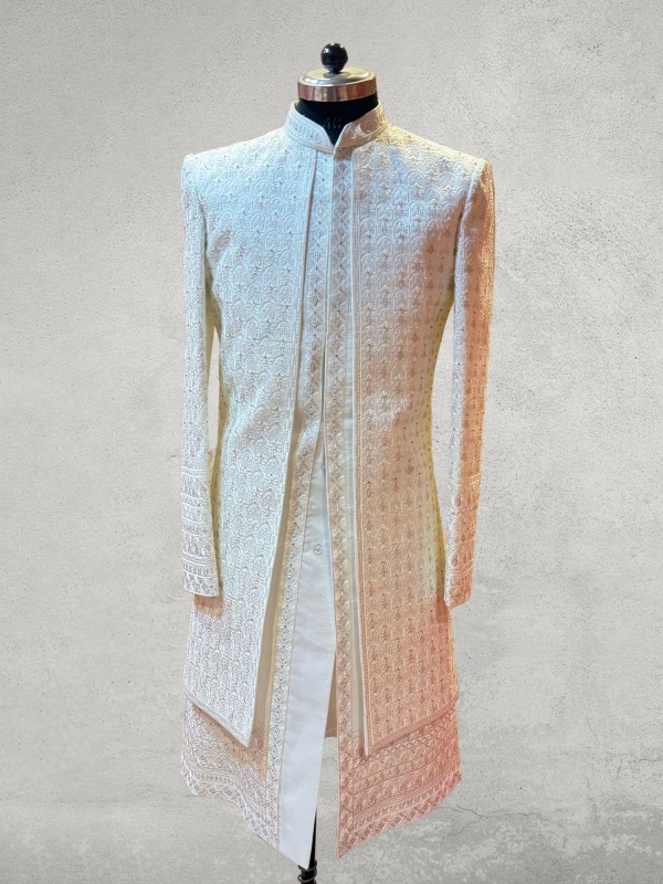 Multicolour zarkan embroidered open pattern designer sherwani