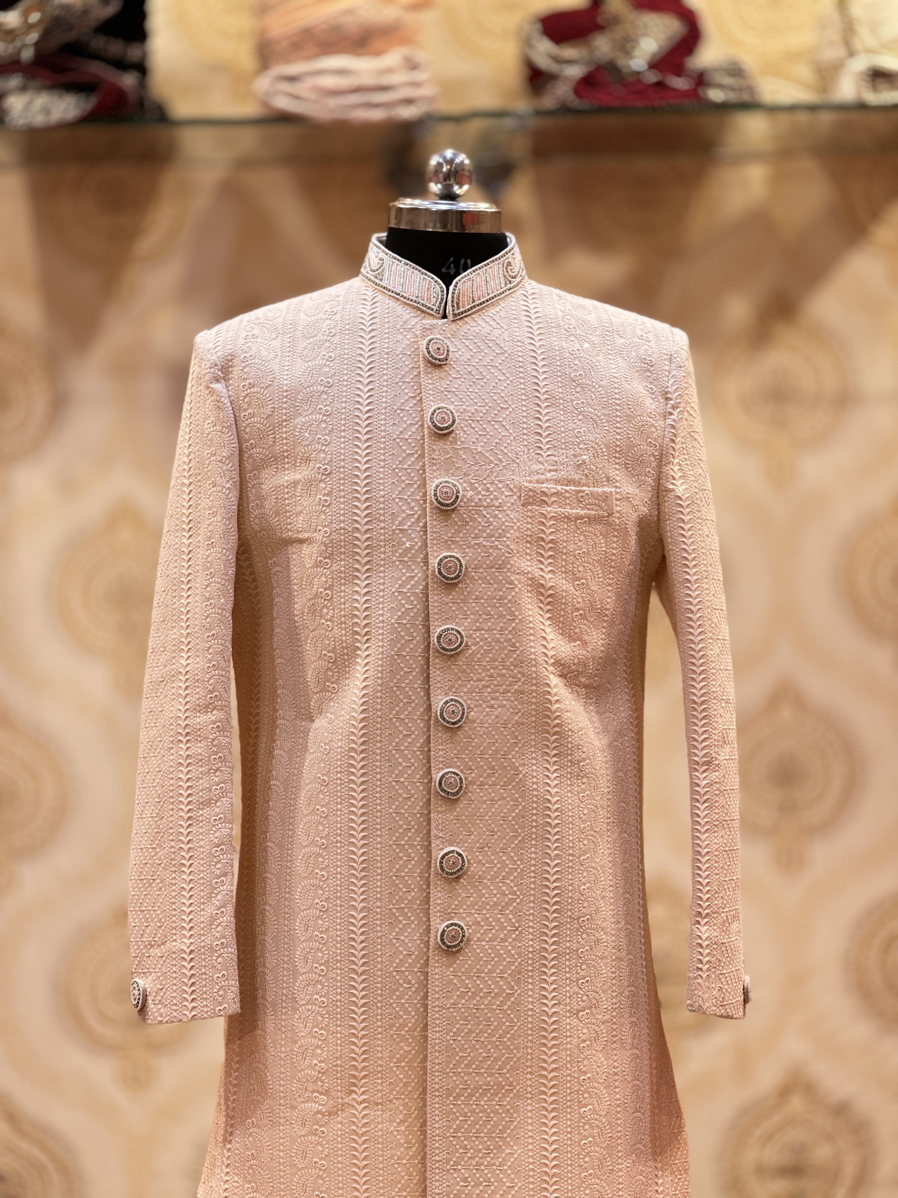 Rose gold block Design sherwani